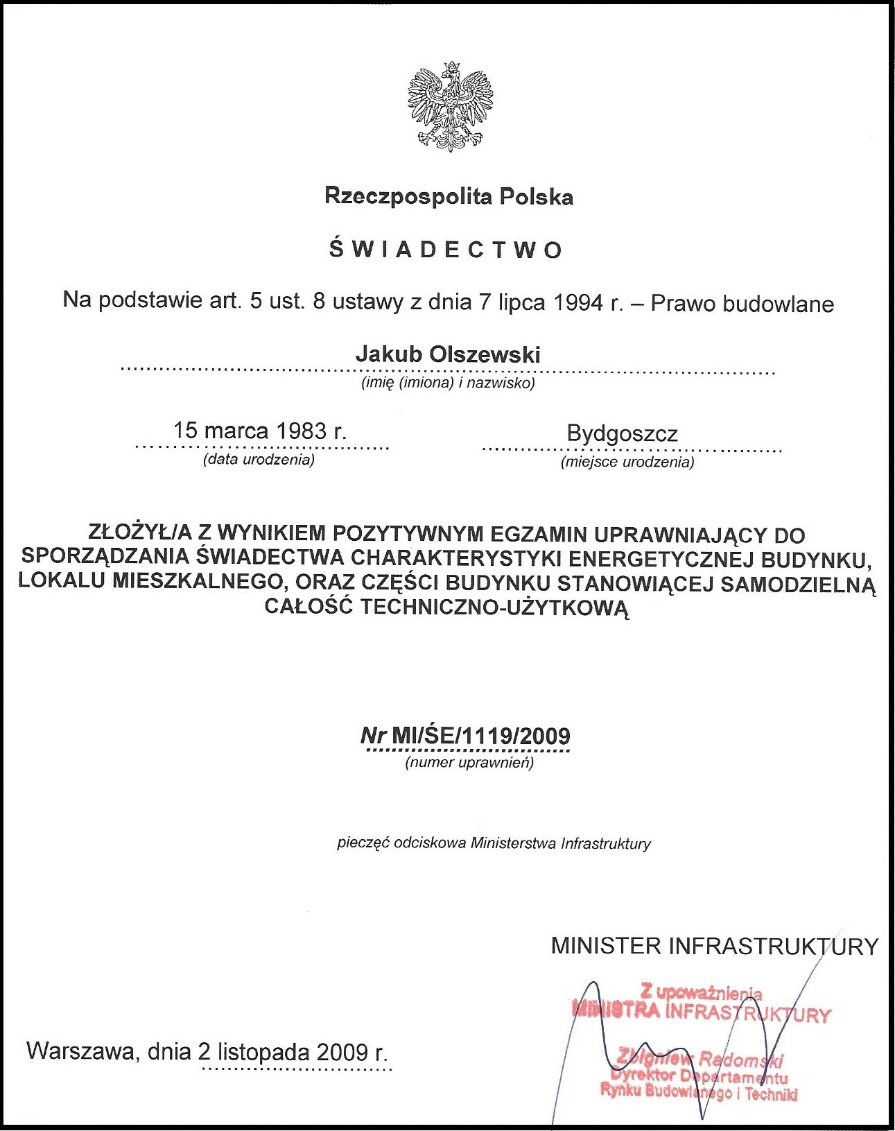Sporządzamy świadectwa energetyczne budynków oraz lokali mieszkalnych niezbędne inwestorowi do zawiadomienia o zakończeniu budowy lub wniosku o udzielenie pozwolenia na użytkowanie.